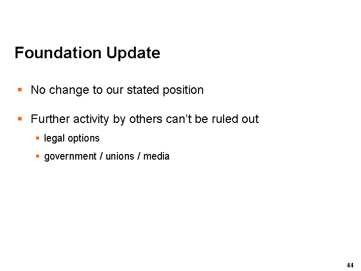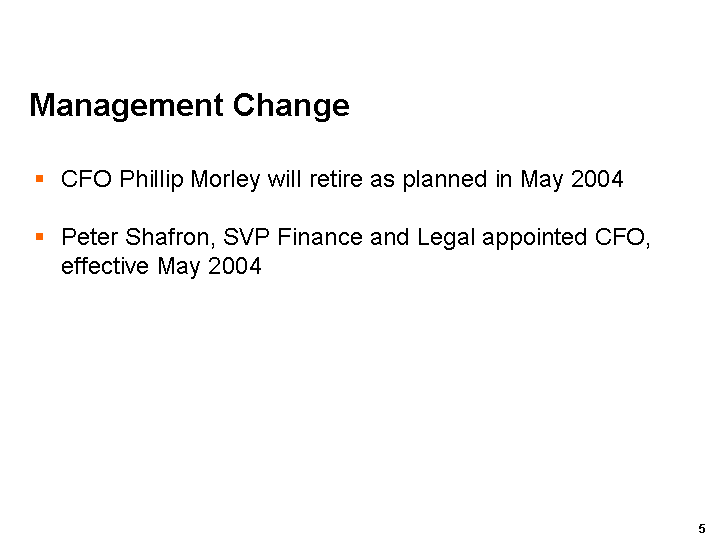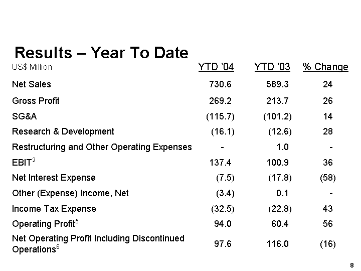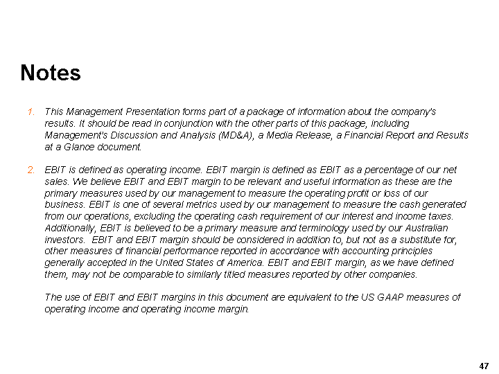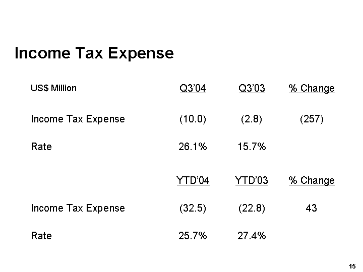 We are comfortable that operating profit from continuing operations for the 2004 fiscal year will fall within the current range of analysts forecasts of between US$122 million and US$134 million*.