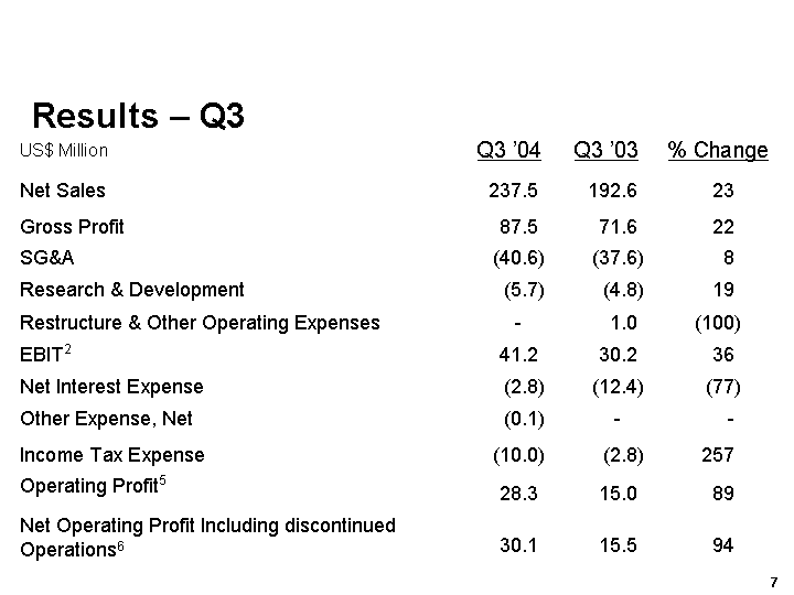 Unless otherwise stated, results are for continuing operations only and comparisons are of the 3rd quarter of the current