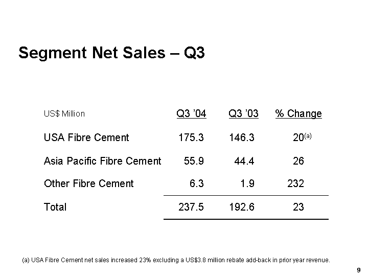 | Media Release: James Hardie - 3rd Quarter and Nine Months Results FY04 | 3 |