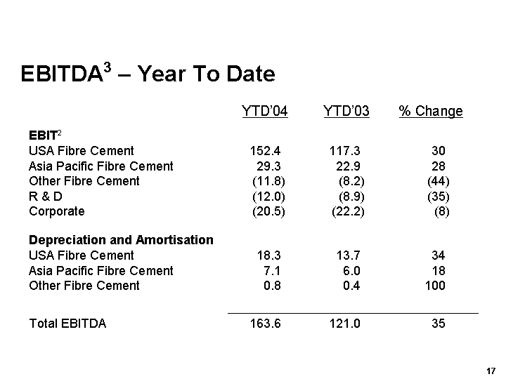 | Media Release: James Hardie - 3rd Quarter and Nine Months Results FY04 | 2 |