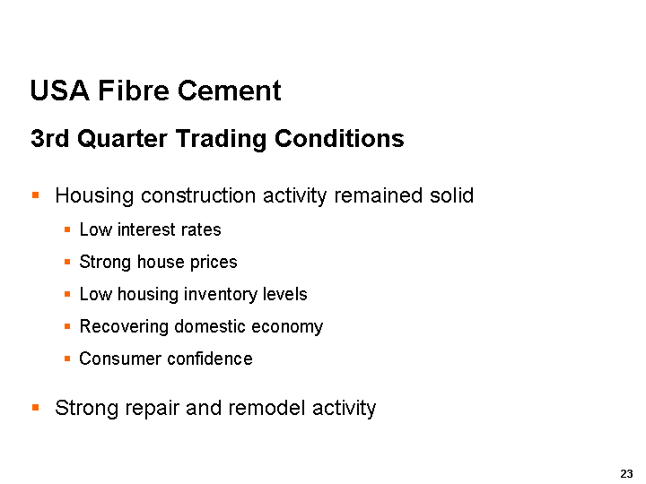 USA Fibre Cement Continued Strong Growth