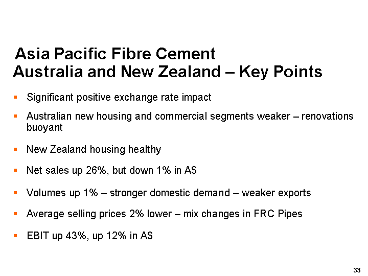 Australia and New Zealand Fibre Cement Stronger Operating Performance
