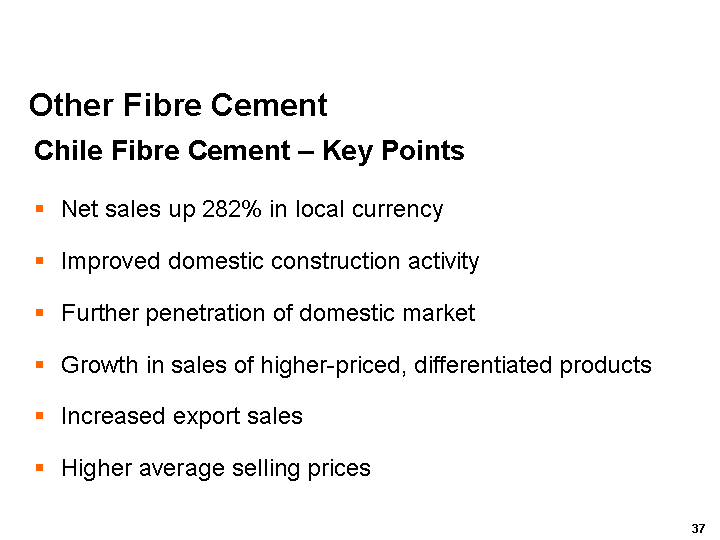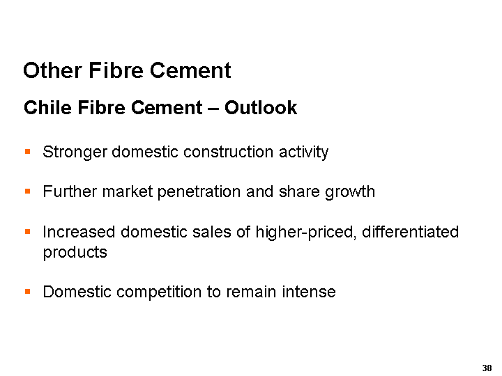 In Chile, increased penetration and share growth is expected from stronger domestic construction activity and an increased awareness of the businesss expanded product range among builders, distributors and contractors.