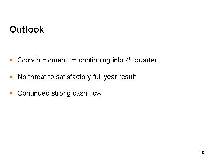 Overall, there is no sign of any near-term threat to satisfactory results for the full year, and the strong growth momentum evident during the first nine months is continuing.
