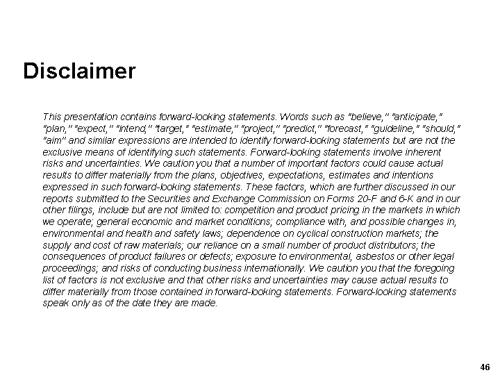 The information contained in the above documents should be read in conjunction with the James Hardie 2003 Annual Report which can be found on the company wesite at www.jameshardie.com.