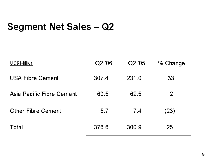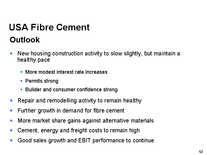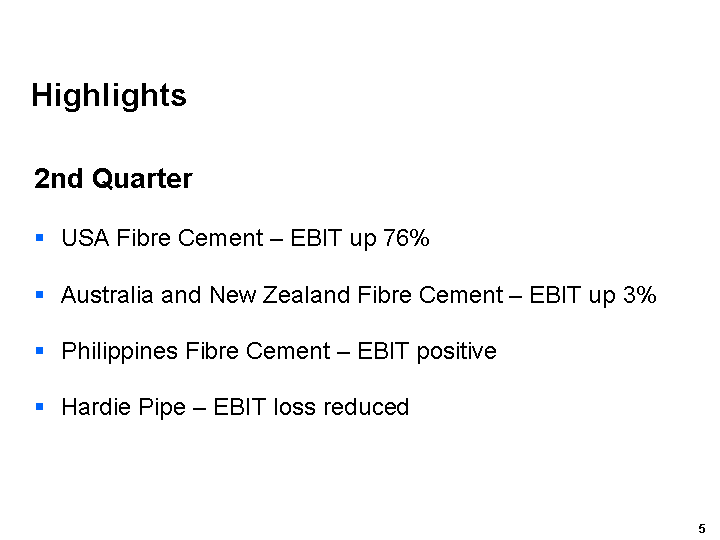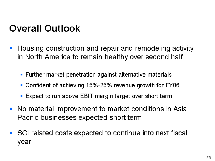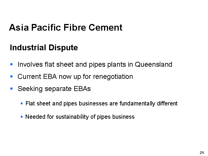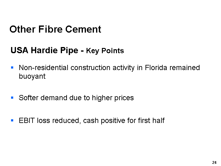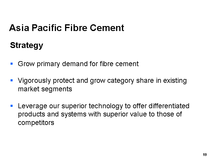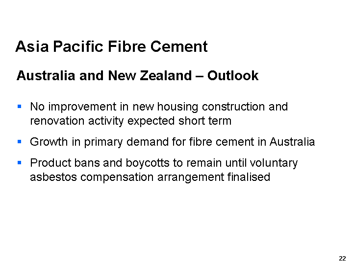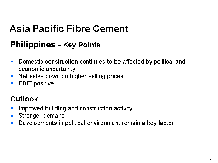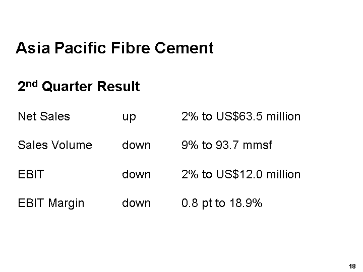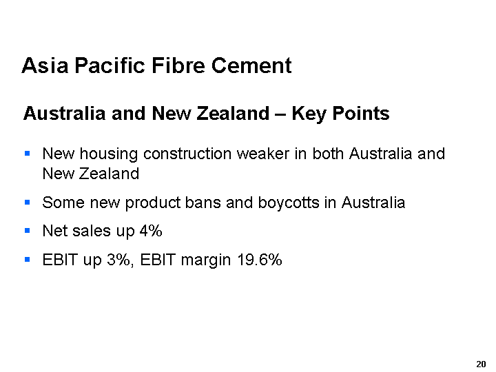 Our Asia Pacific Fibre Cement business performed relatively well in markets that continued to