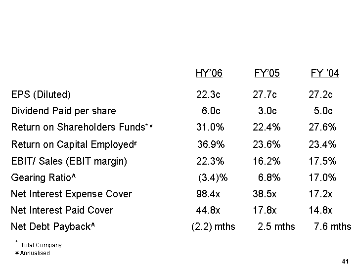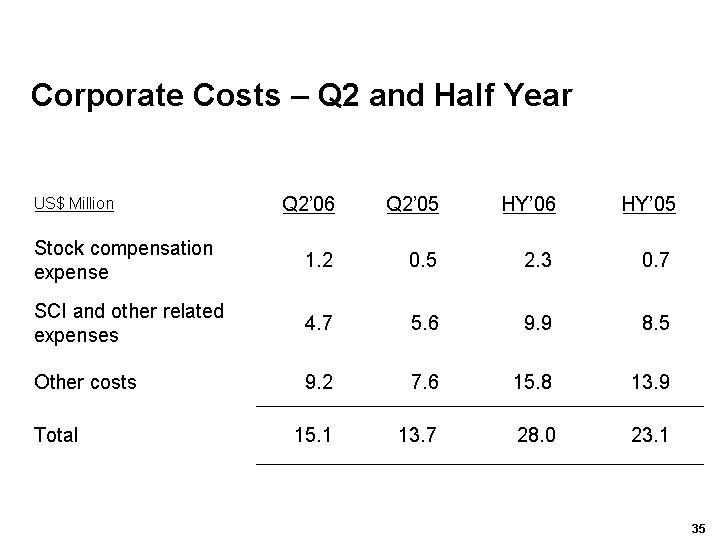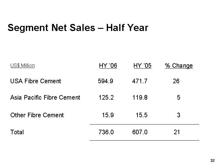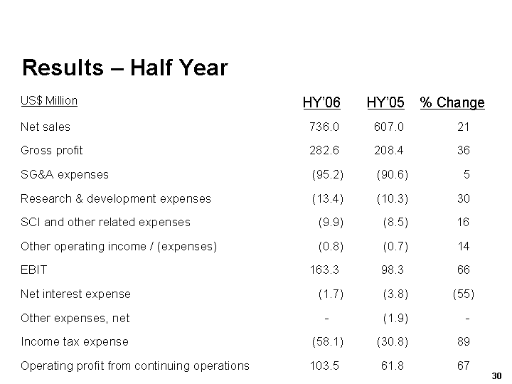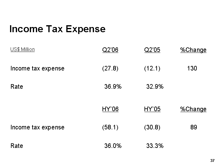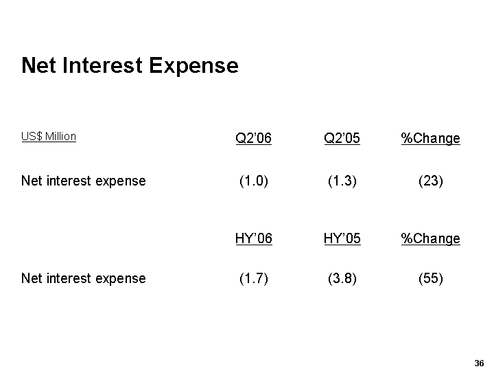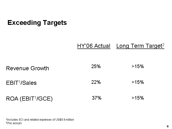US$ Million HY'06 HY'05 HY'06 HY'05