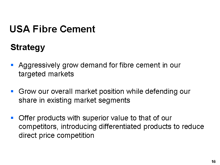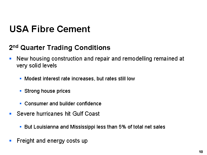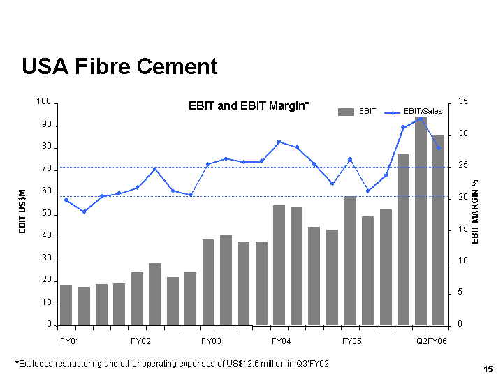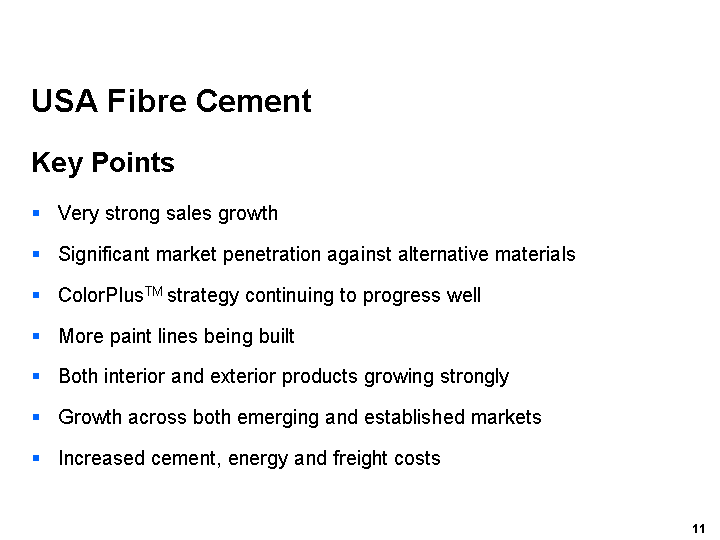 Our USA Fibre Cement business was again the standout performer, with strong demand leading to a 33%