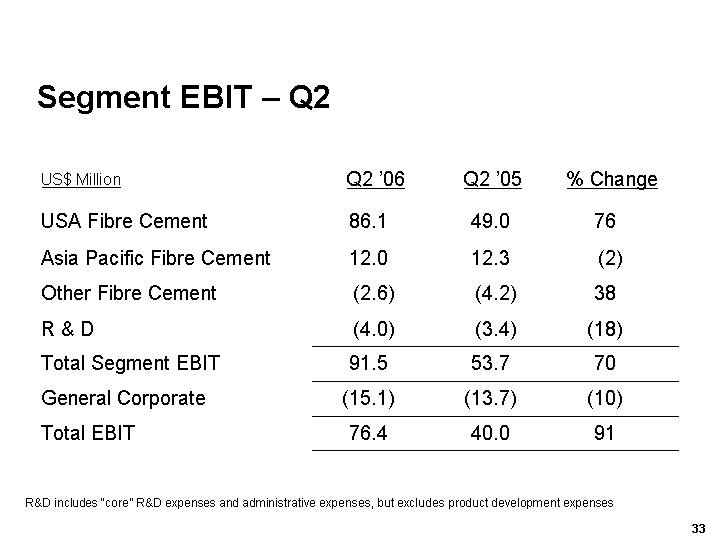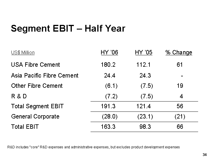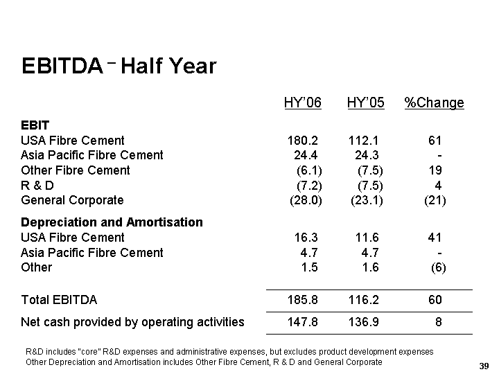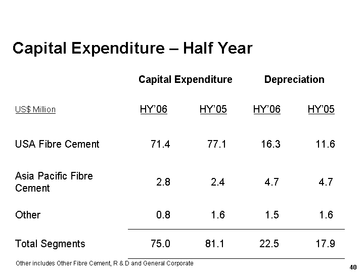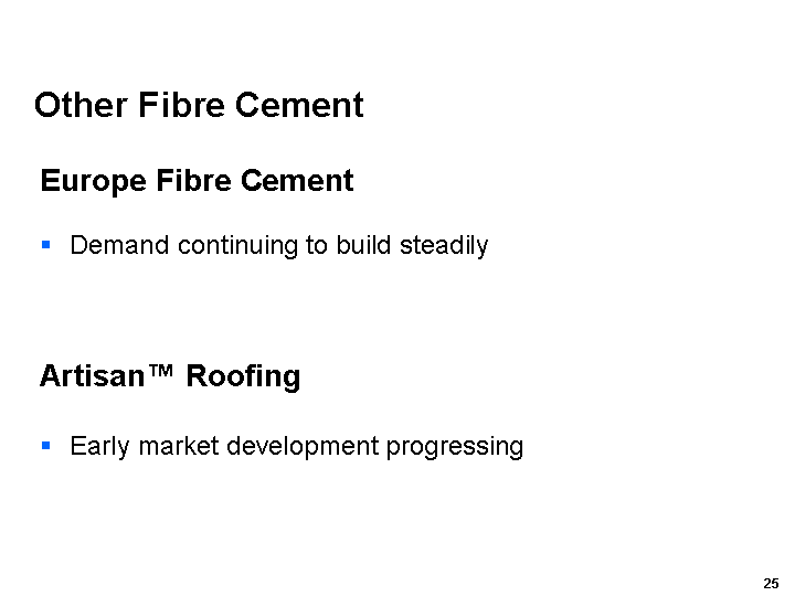 Other includes Other Fibre Cement, R & D and General Corporate