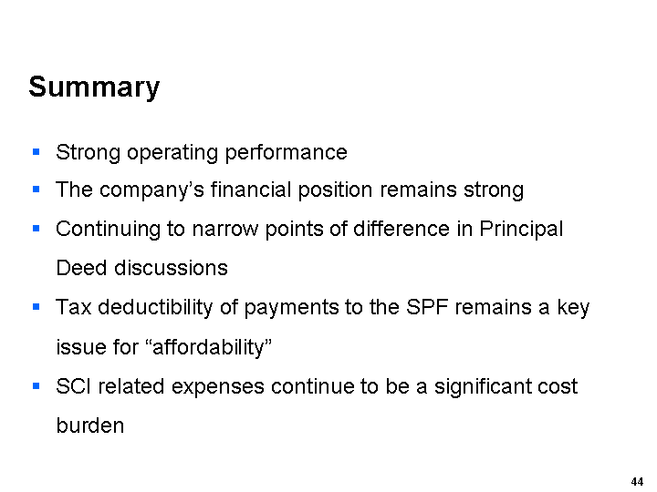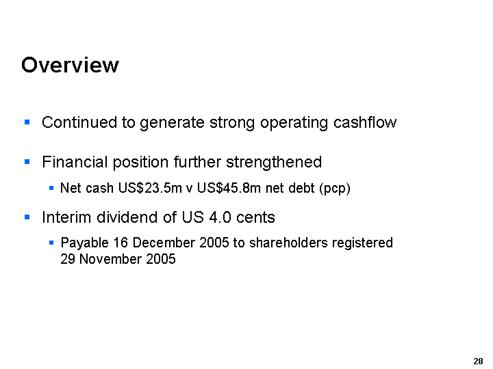 December 2005. A dividend of US6 cents per share/CUFS was paid on 1 July 2005 and a dividend of US3