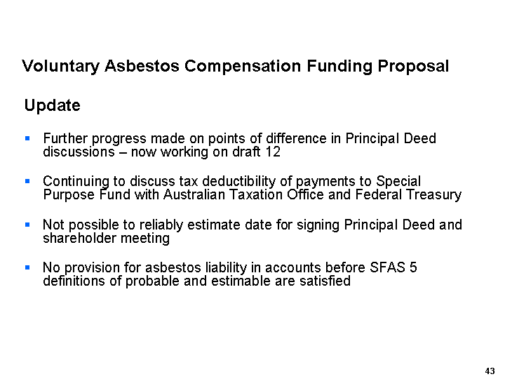 The following entities were liquidated on 23 August 2005: James Hardie Australia