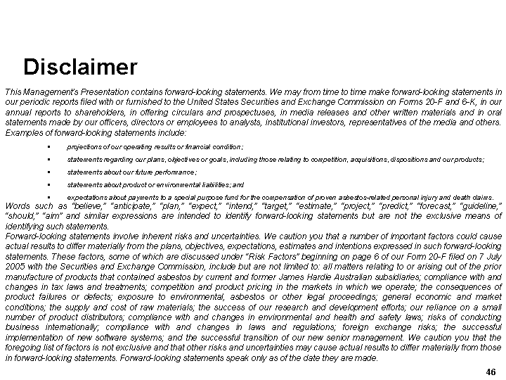 Listing Rule 4.2A and should be read in conjunction with the James Hardie 2005 Annual Report