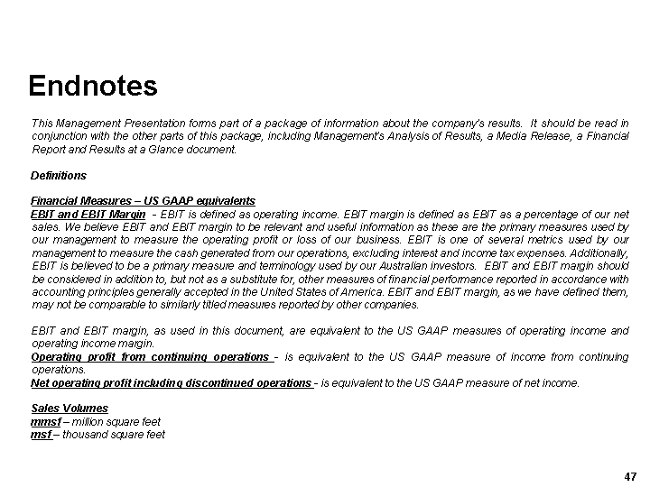 This Management Presentation forms part of a package of information about the company's results. It should be read in