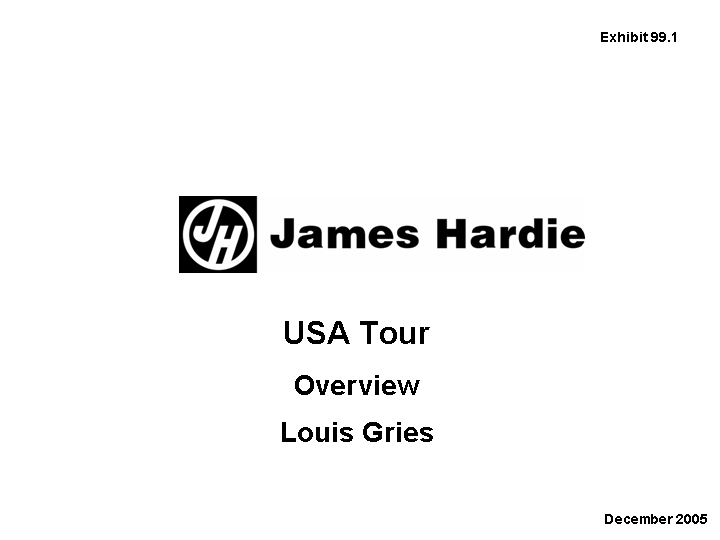 | USA Tour Overview Louis Gries December 2005 Exhibit 99.1 |