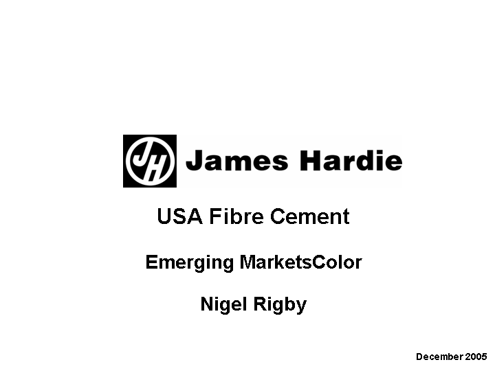 | USA Fibre Cement Emerging MarketsColor Nigel Rigby December 2005 |