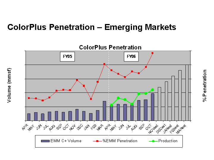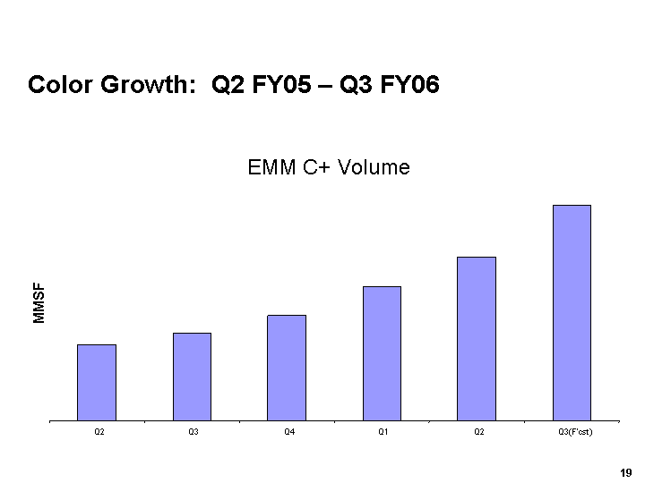 | Color Growth: Q2 FY05 - Q3 FY06 EMM C+ Volume Q2 Q3 Q4 Q1 Q2 Q3(F'cst) MMSF |