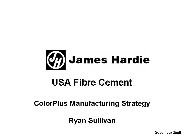 | USA Fibre Cement ColorPlus Manufacturing Strategy Ryan Sullivan December 2005 |