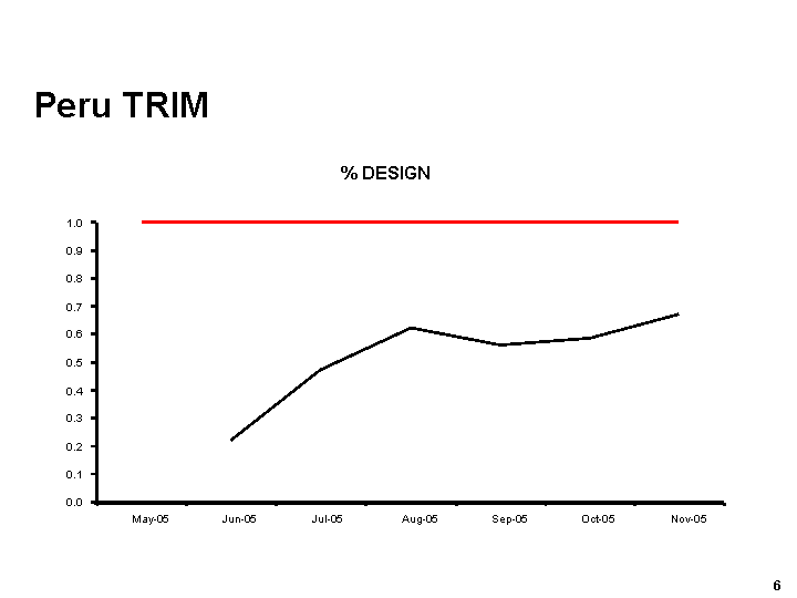 | Peru TRIM % DESIGN 0.0 0.1 0.2 0.3 0.4 0.5 0.6 0.7 0.8 0.9 1.0 May-05 Jun-05 Jul-05 Aug-05 Sep-05 Oct-05 Nov-05 |