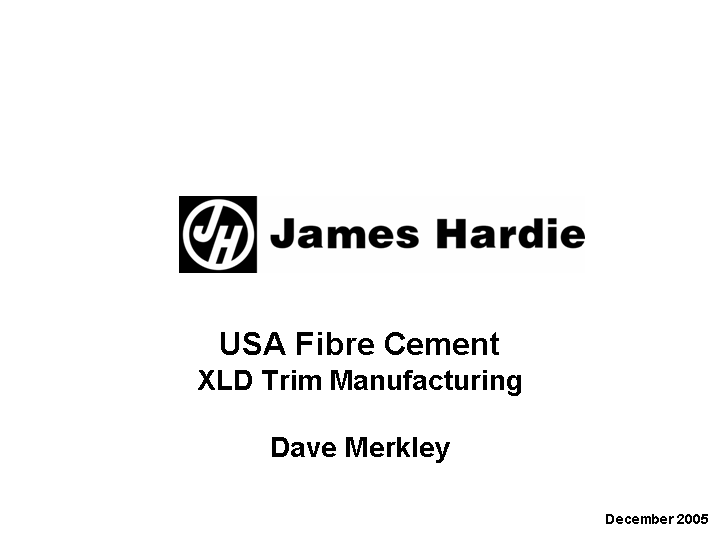 | USA Fibre Cement XLD Trim Manufacturing Dave Merkley December 2005 |