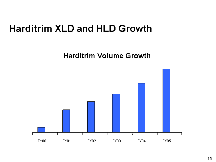 | Harditrim XLD and HLD Growth Harditrim Volume Growth FY00 FY01 FY02 FY03 FY04 FY05 |
