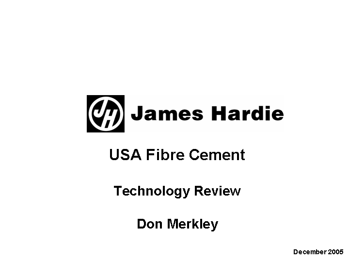 | USA Fibre Cement Technology Review Don Merkley December 2005 |
