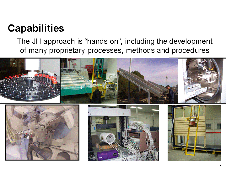 | The JH approach is "hands on", including the development of many proprietary processes, methods and procedures Capabilities |