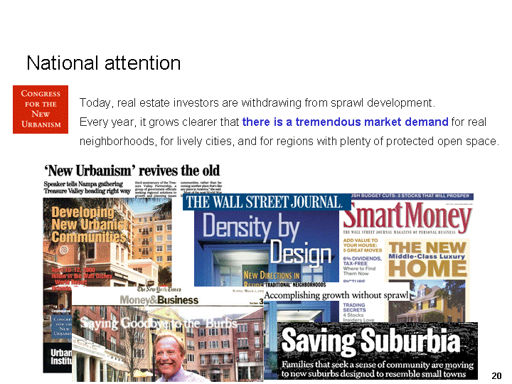 | Today, real estate investors are withdrawing from sprawl development. Every year, it grows clearer that there is a tremendous market demand for real neighborhoods, for lively cities, and for regions with plenty of protected open space. neighborhoods, for lively cities, and for regions with plenty of protected open space. neighborhoods, for lively cities, and for regions with plenty of protected open space. neighborhoods, for lively cities, and for regions with plenty of protected open space. neighborhoods, for lively cities, and for regions with plenty of protected open space. neighborhoods, for lively cities, and for regions with plenty of protected open space. neighborhoods, for lively cities, and for regions with plenty of protected open space. National attention |