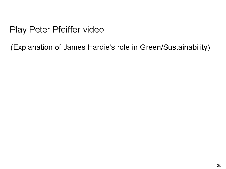 | Play Peter Pfeiffer video (Explanation of James Hardie's role in Green/Sustainability) |