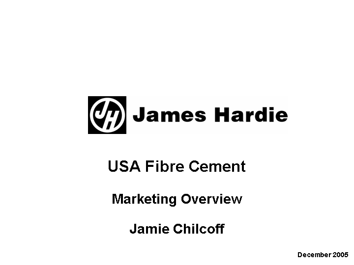 | USA Fibre Cement Marketing Overview Jamie Chilcoff December 2005 |