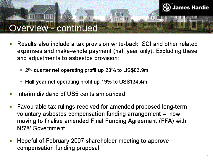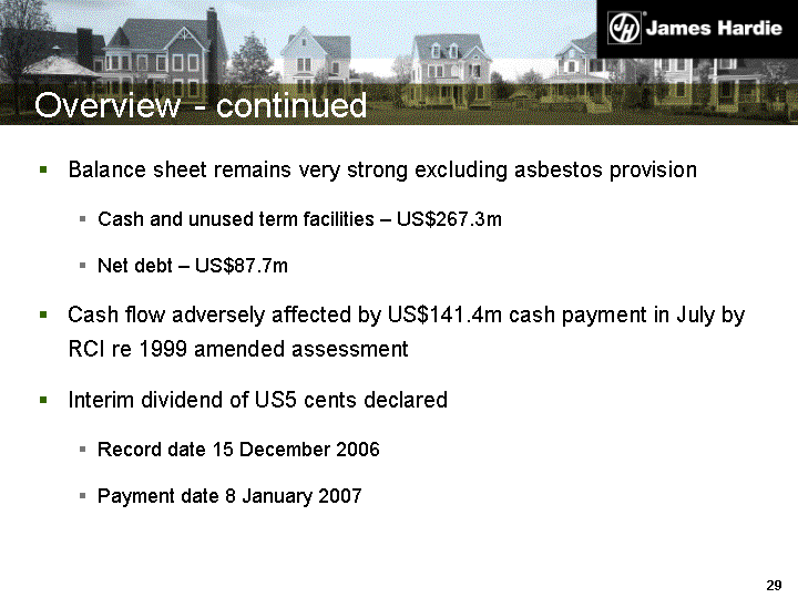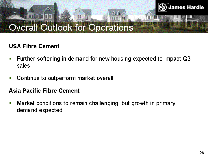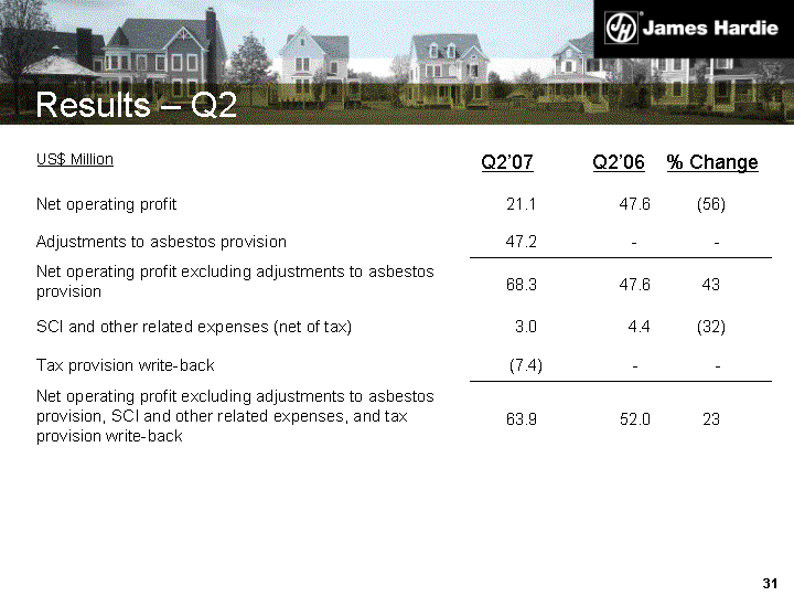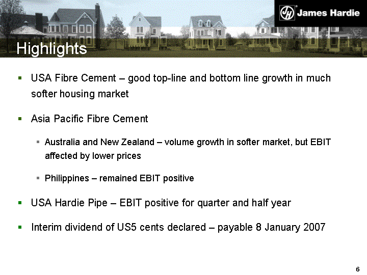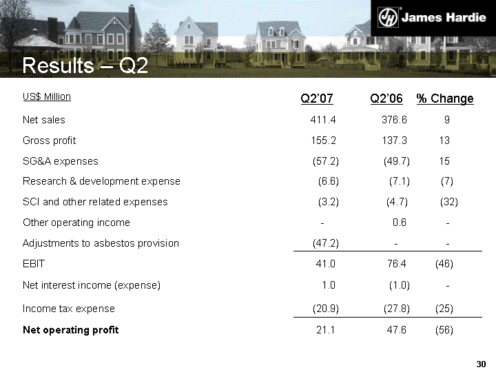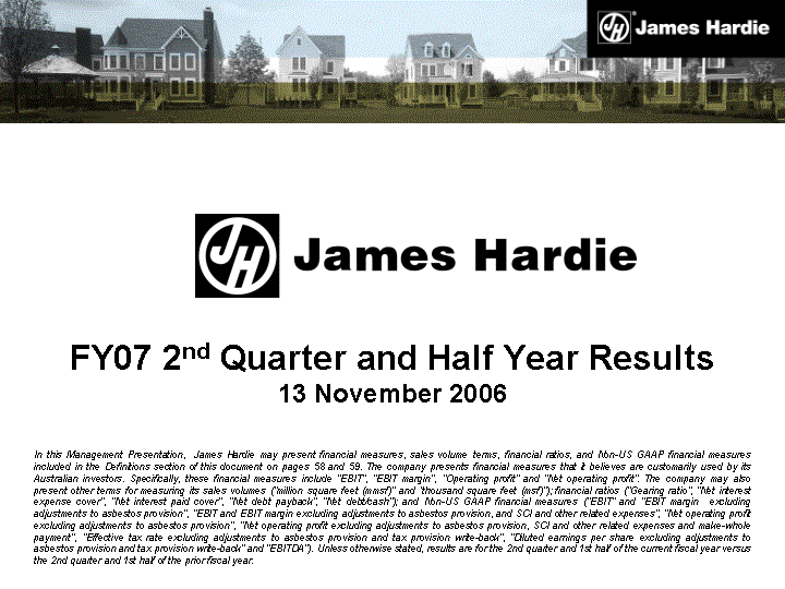 James Hardie today announced that for the three months ended 30 September 2006, net operating