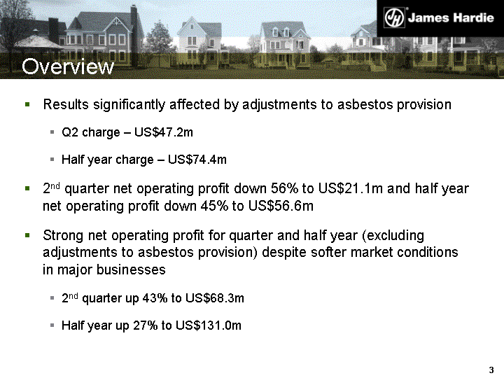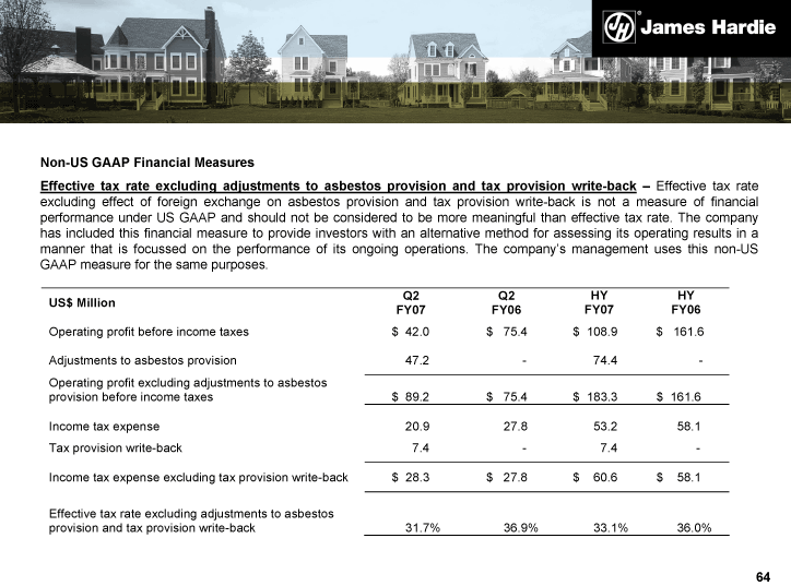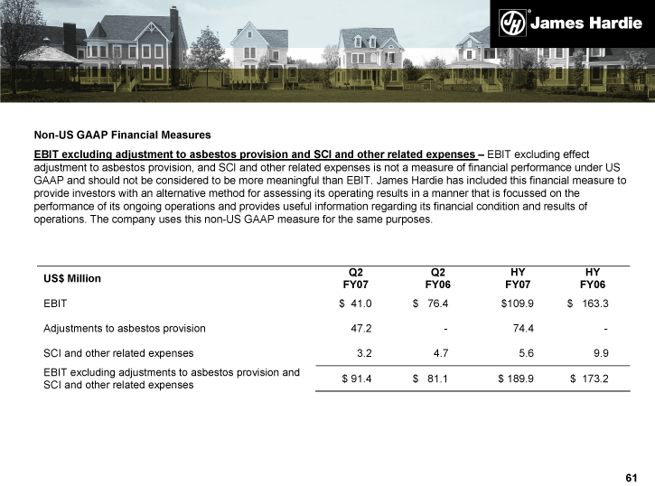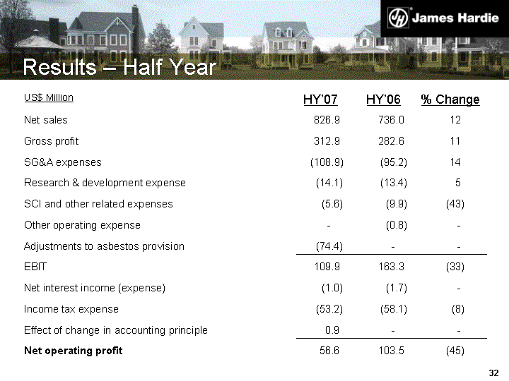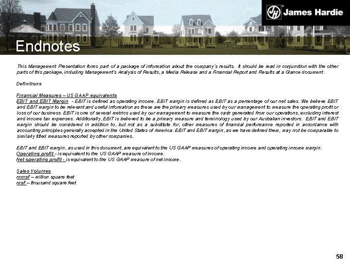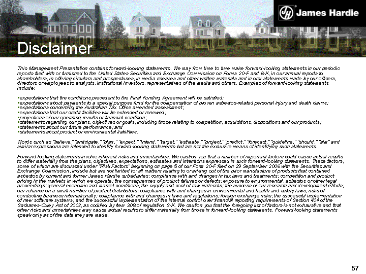 This Financial Report of results contains forward-looking statements. James Hardie may from