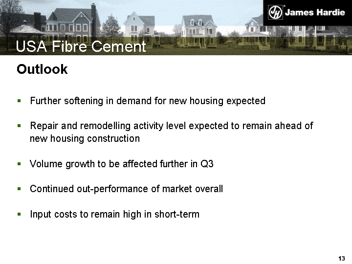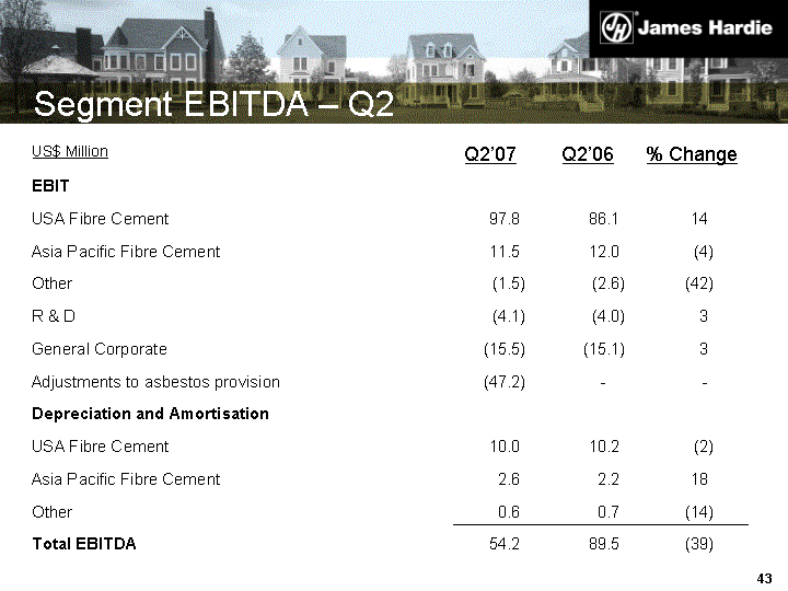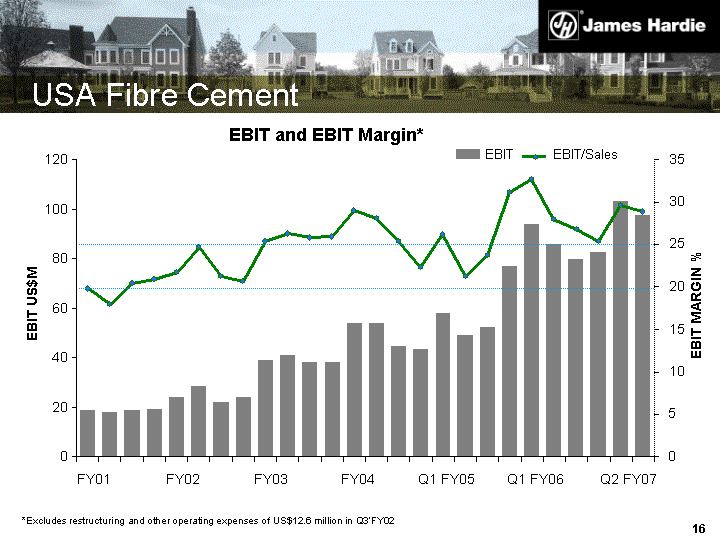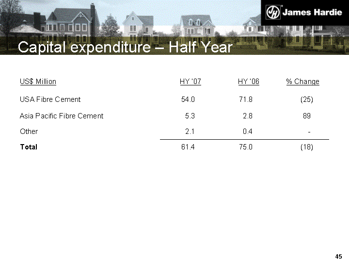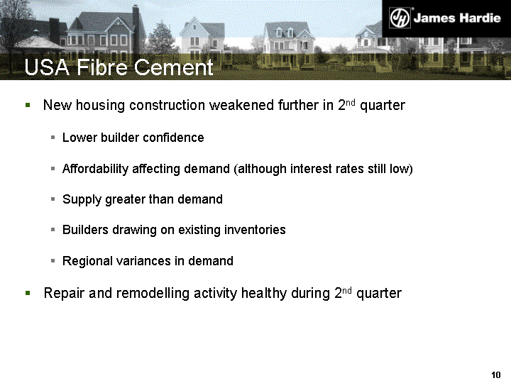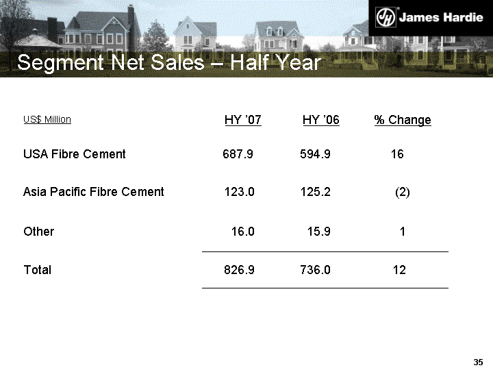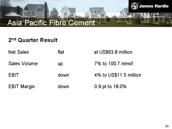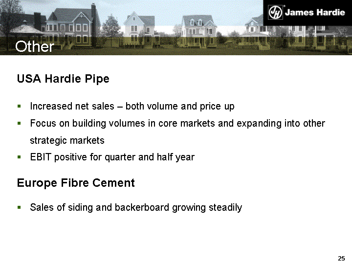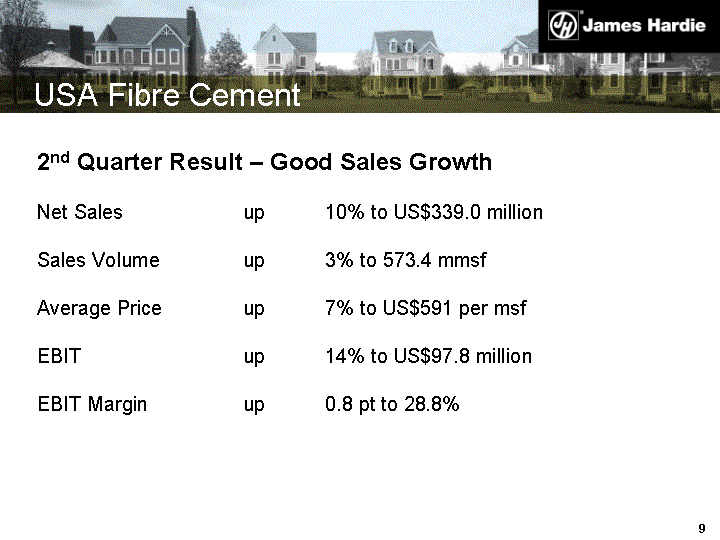 The USA Fibre Cement business was again the standout performer, lifting 2nd quarter net