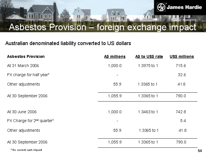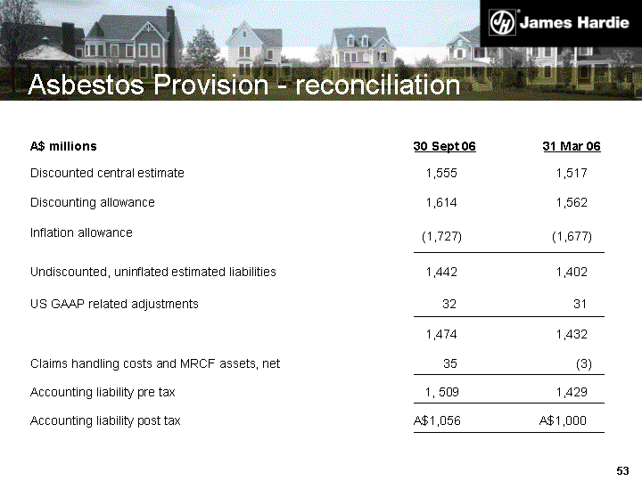 The asbestos provision was increased by A$55.9 million (US$41.8 million) to reflect the results of