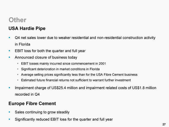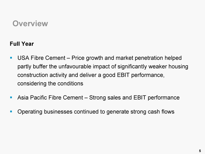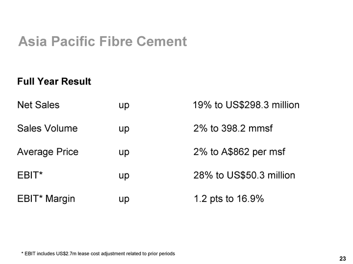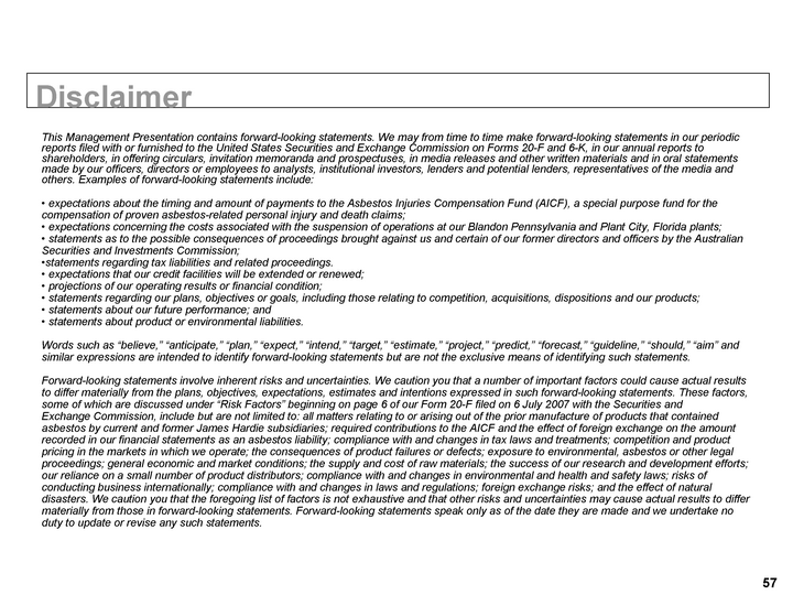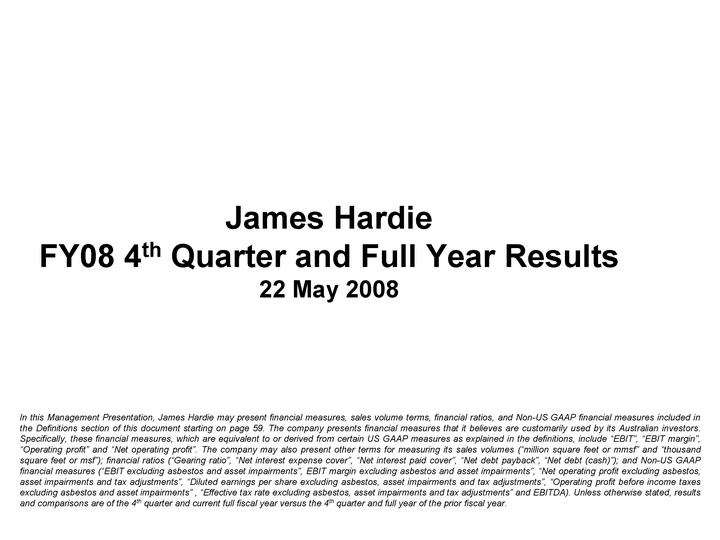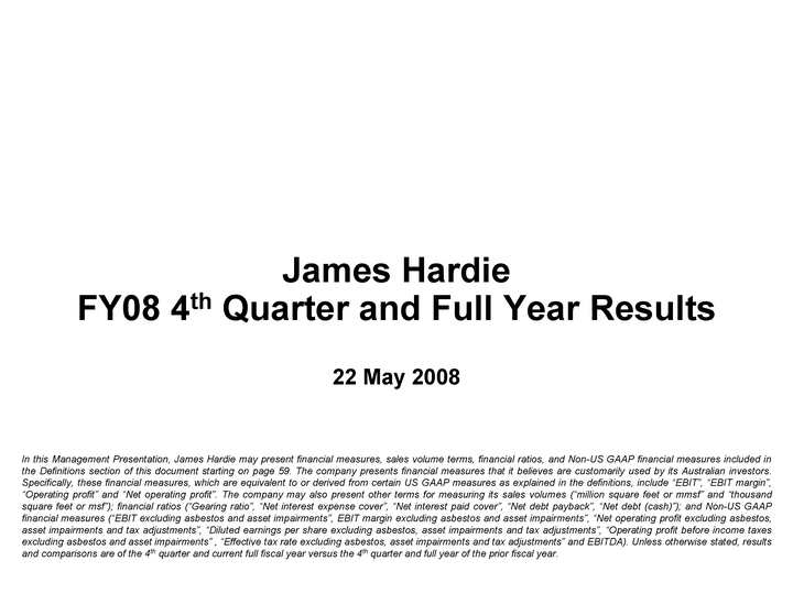 This Financial Report of results contains forward-looking statements. James Hardie may from