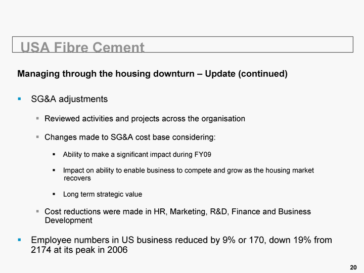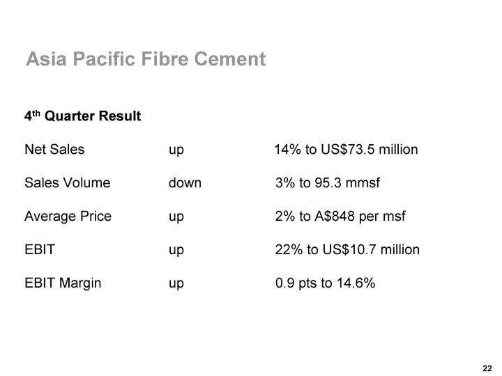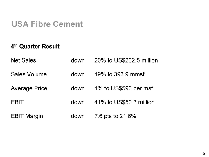 James Hardie today announced a US$20.1 million net operating profit, excluding asbestos,