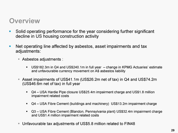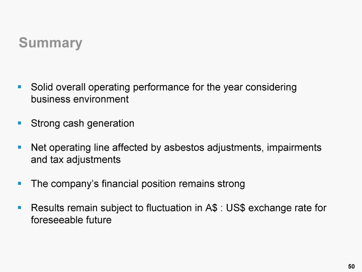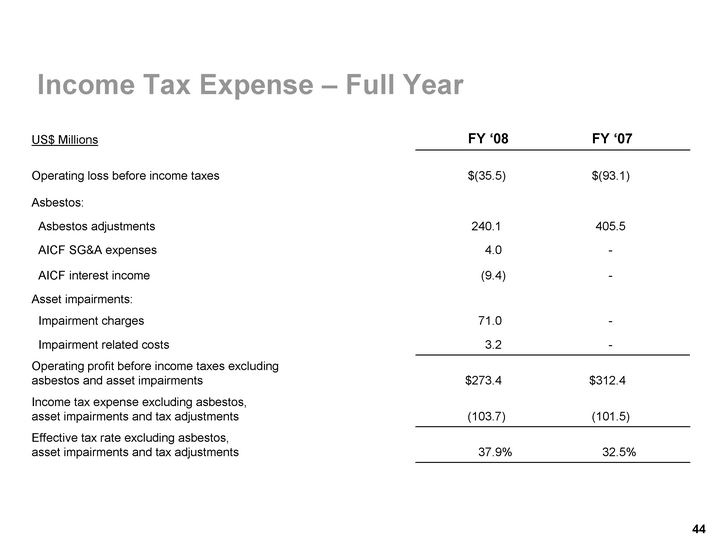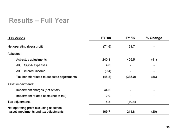For the full year, net operating profit excluding asbestos, asset impairments and tax