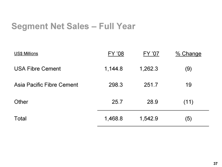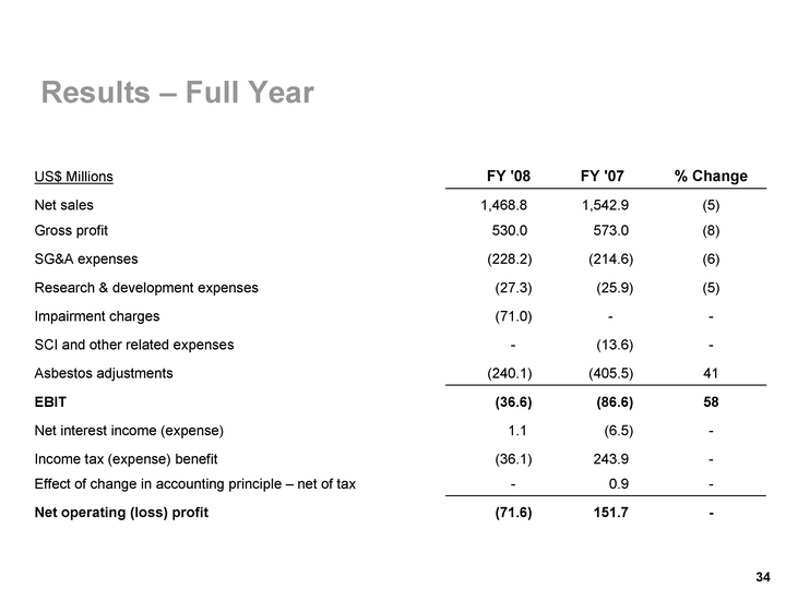US$86.6 million in fiscal year 2007 to an EBIT loss of US$36.6 million in fiscal year 2008.