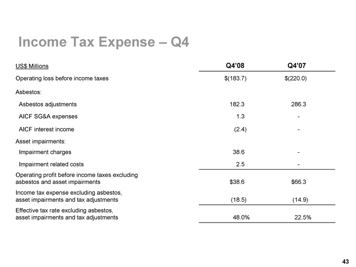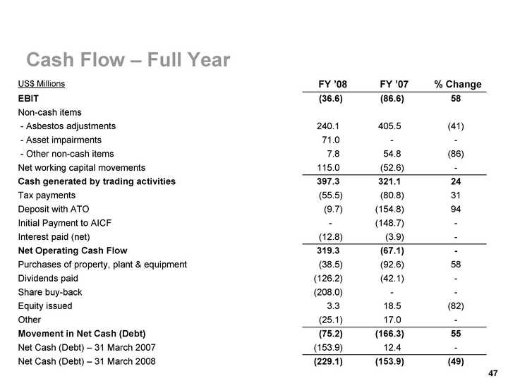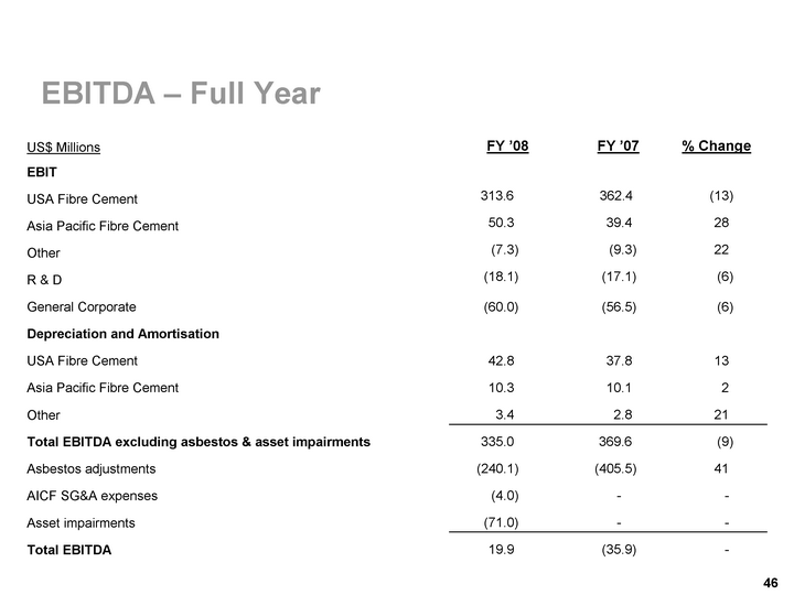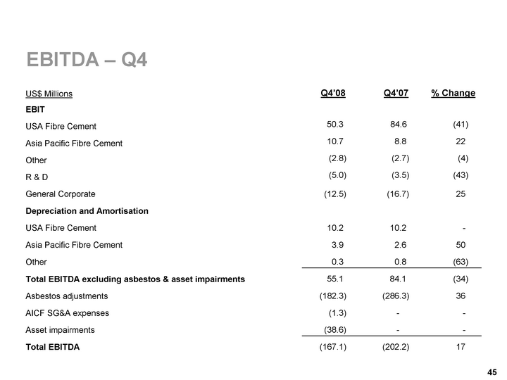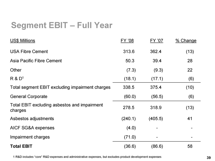US$107.2 million and EBIT excluding asbestos and asset impairments was 39% lower at US$43.2