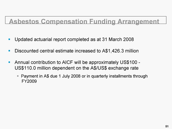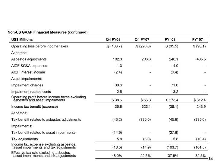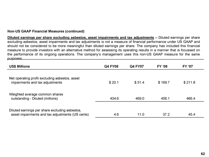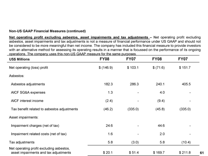 adjustments decreased 20% to US$169.7 million from US$211.8 million. Including asbestos,