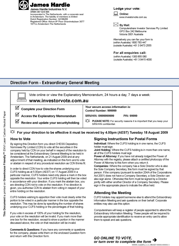 representing James Hardie Industries SE ordinary shares