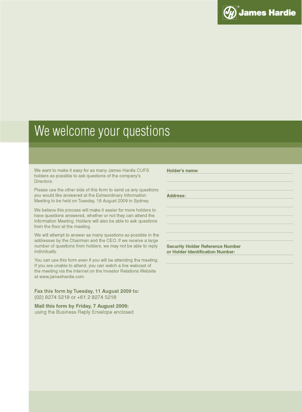 by reference to Exhibit 99.3 to James Hardies Annual