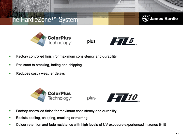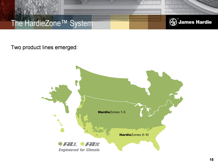 | 15 The HardieZone(tm) System Two product lines emerged: |