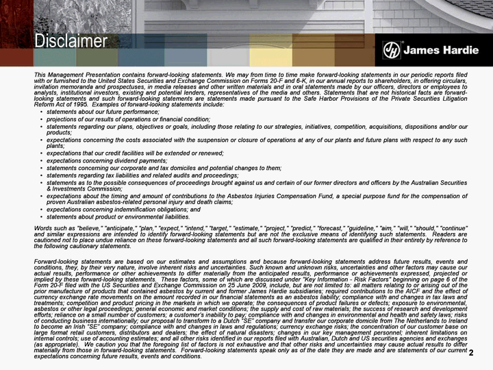This Management Presentation contains forward-looking statements. We may from time to time make forward-looking statements in our periodic reports filed