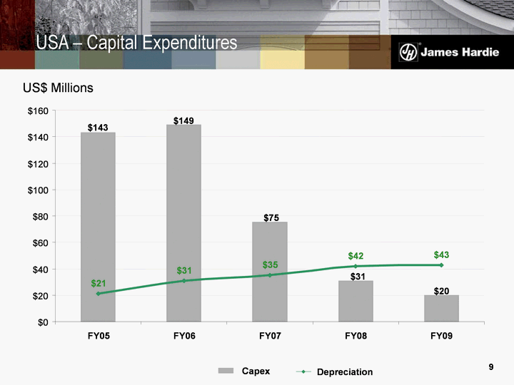 | 9 USA - Capital Expenditures $75 $143 $149 $31 $20 $21 $31 $35 $42 $43 $0 $20 $40 $60 $80 $100 $120 $140 $160 FY05 FY06 FY07 FY08 FY09 Capex Depreciation US$ Millions |