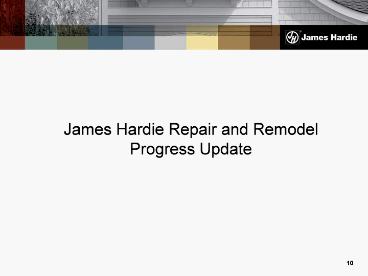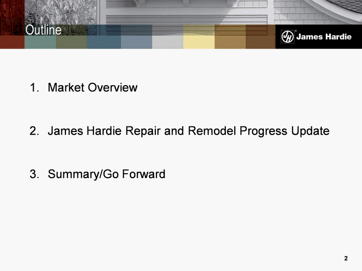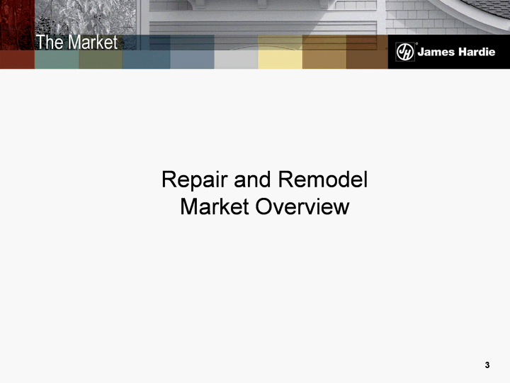 | 2 Market Overview James Hardie Repair and Remodel Progress Update Summary/Go Forward Outline |