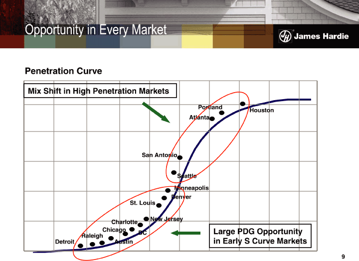 | 9 Penetration Curve Houston Portland Atlanta Seattle Raleigh San Antonio Charlotte St. Louis Minneapolis Detroit New Jersey Austin Chicago Denver DC Mix Shift in High Penetration Markets Large PDG Opportunity in Early S Curve Markets Opportunity in Every Market |