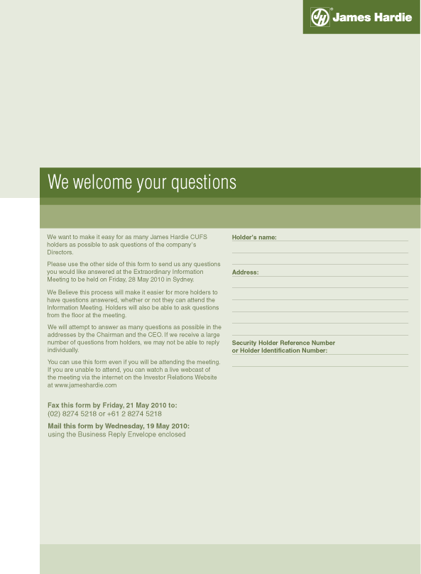 Fund Limited, James Hardie Industries N.V., James Hardie