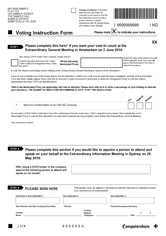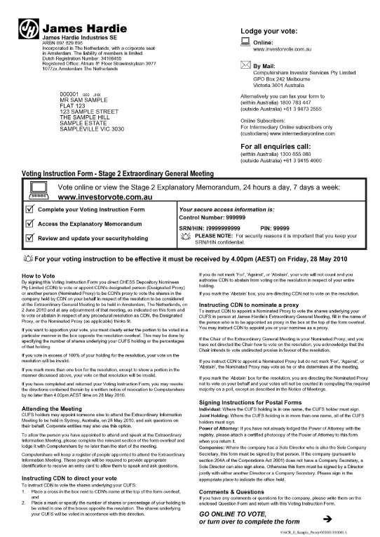 Completed Voting Instruction Forms may be lodged with