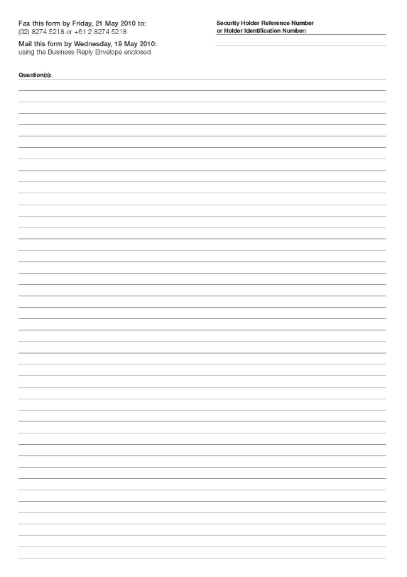 by facsimile to 18 0078 3477 from inside Australia or +61 3 9473