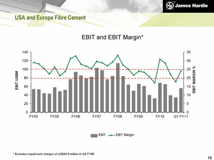 | USA and Europe Fibre Cement * Excludes impairment charges of US$45.6 million in Q4 FY08 12 EBIT and EBIT Margin* EBIT EBIT Margin |
